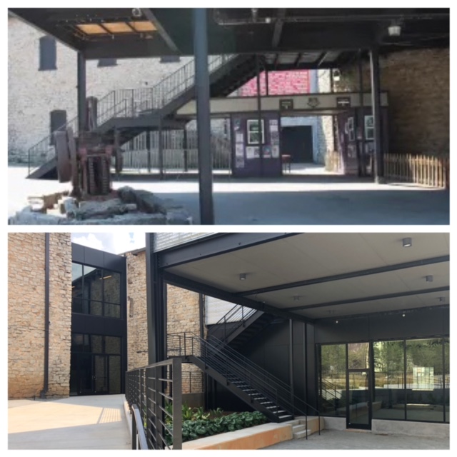 When I pulled up and parked on the side of the building, I suddenly got chills. I felt more nostalgic than I have in a long time. I felt like I was living one of those old rock n’ roll documentaries where a band goes back to where they played their first gig and find that it’s now a strip mall or a laundromat. I got out of the car and walked around to the front of the building, and there it was—the Mill. The enormous double castle-like doors were now large glass doors with a keypad. I peered through one of the doors, and I could see the entrances to Purgatory on the left and Hell to the right. The inside was so bright from the abundance of the large ceiling to floor windows. Gone was the rickety, horrifying stairway to Heaven (see what I did there?), and now it was some fancy, rod-iron staircase leading to the upstairs.